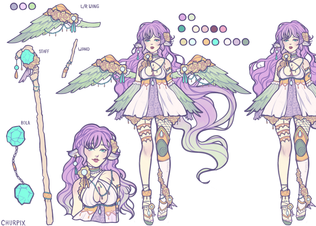 Character design reference sheet. Partial, full, or preexisting character design. ✦