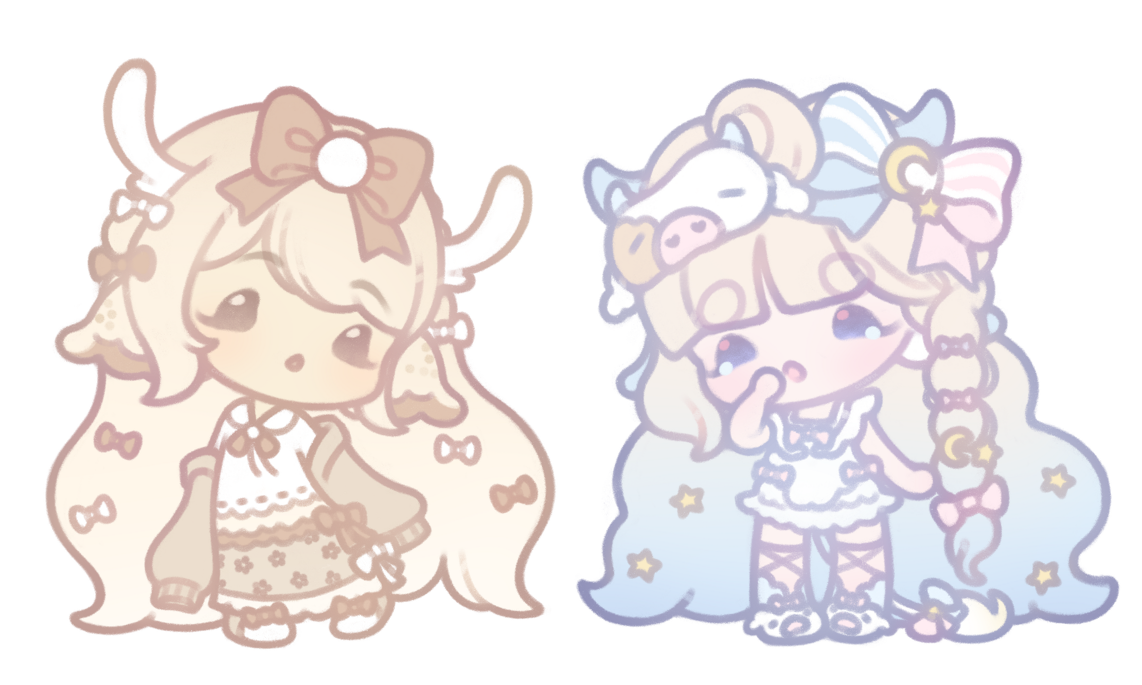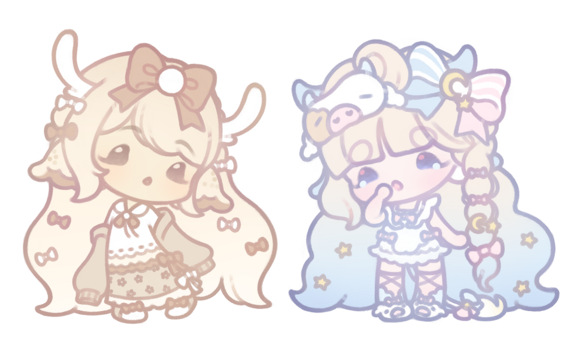 Mini fullbody chibis simplified in a soft cute style.+ Extra Characters ✦